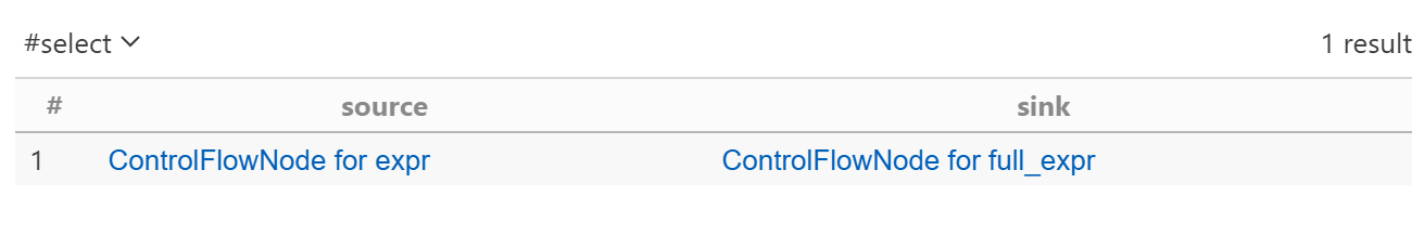 1 2 3 4 5 6 7 8 9 10 11 12 13 14 15 16 17 18 19 20 21 22 23 24 25 26 27 28 29 //导入库 import python import semmle.python.dataflow.new.TaintTracking import semmle.python.dataflow.new.DataFlow import semmle.python.ApiGraphs //定义source和sink module TestTaintTrackingConfig implements DataFlow::ConfigSig { predicate isSource(DataFlow::Node source) { exists(CallNode call | call.getFunction().(NameNode).getId() = "input" and source.(DataFlow::CfgNode).getNode() = call.getASuccessor() ) } predicate isSink(DataFlow::Node sink) { exists(CallNode call | call.getFunction().(NameNode).getId() = "eval" and sink.(DataFlow::CfgNode).getNode() = call.getAnArg() ) } } //路径查询 module TestTaintTrackingFlow = TaintTracking::Global<TestTaintTrackingConfig>; from TestTaintTrackingFlow::PathNode source, TestTaintTrackingFlow::PathNode sink where TestTaintTrackingFlow::flowPath(source, sink) select source, sink
